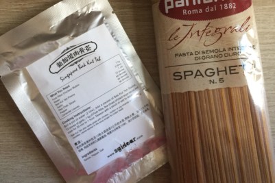 打算煮公仔麵,但原來家裡一包不剩,唯有找找有甚麼可吃的… 只有意大利粉… 又找到一包肉骨茶包,那就煮肉骨茶意粉吧!