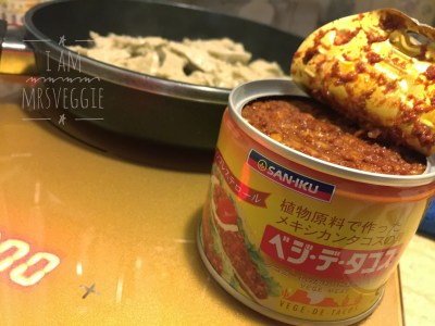 - 下素Tacos,加水,煮至烤麩入味。