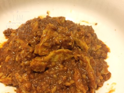 罐頭素Tacos就是已調味的大豆肉燥,味道鹹鹹辣辣的很惹味,而且還有麥粒豐富口感,其實直接塗麵包或也拌吃也可以了。烤麩本身沒有味道,所以配濃味的素Tacos剛剛好。