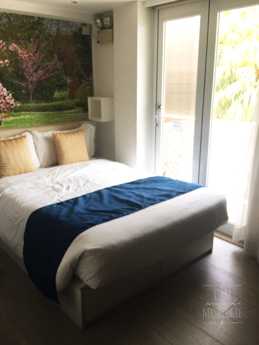 很小很小的一個房間,只放得下一張雙人床和一個電視櫃,還有一個小小的浴室,小小的露台,露台可看到沙灘。