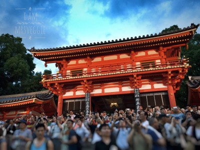 七時,祭司燃點火炬,然後幾百人擁著火炬由八阪神社走到街上巡遊,抬火炬的每走幾步就會換人的了,隊伍沿途「唏呵。唏呵。唏呵。」的打著拍子,特別有氣氛。巡遊後在八阪神社還有儀式,但我們要趕景點只看一會就走了。