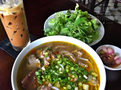 因為太餓顧不了相機先食,來到越南當然必點牛肉粉和咖啡,另點了有蜆煲、炒菜和炒飯。越南的蜆很鮮很肥美,米飯比泰國的小顆鬆散,米味清香。Mr Veggie 點了牛油果特飲,但他說味道古怪,嘗兩口就放棄了。