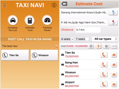 峴港旅遊基本只靠的士,出發前看到網上介紹越南電召的士Apps 「Taxi Navi」,雖然不會越南文叫不著車,但用來預算路程和費用還是幫了大忙。四日內先後乘過綠色(Mai Linh)、白色(Vinasun)、黃色(Tien Sa)的士,三家公司的車也頗新淨,價錢全在預計範圍內,印象良好。