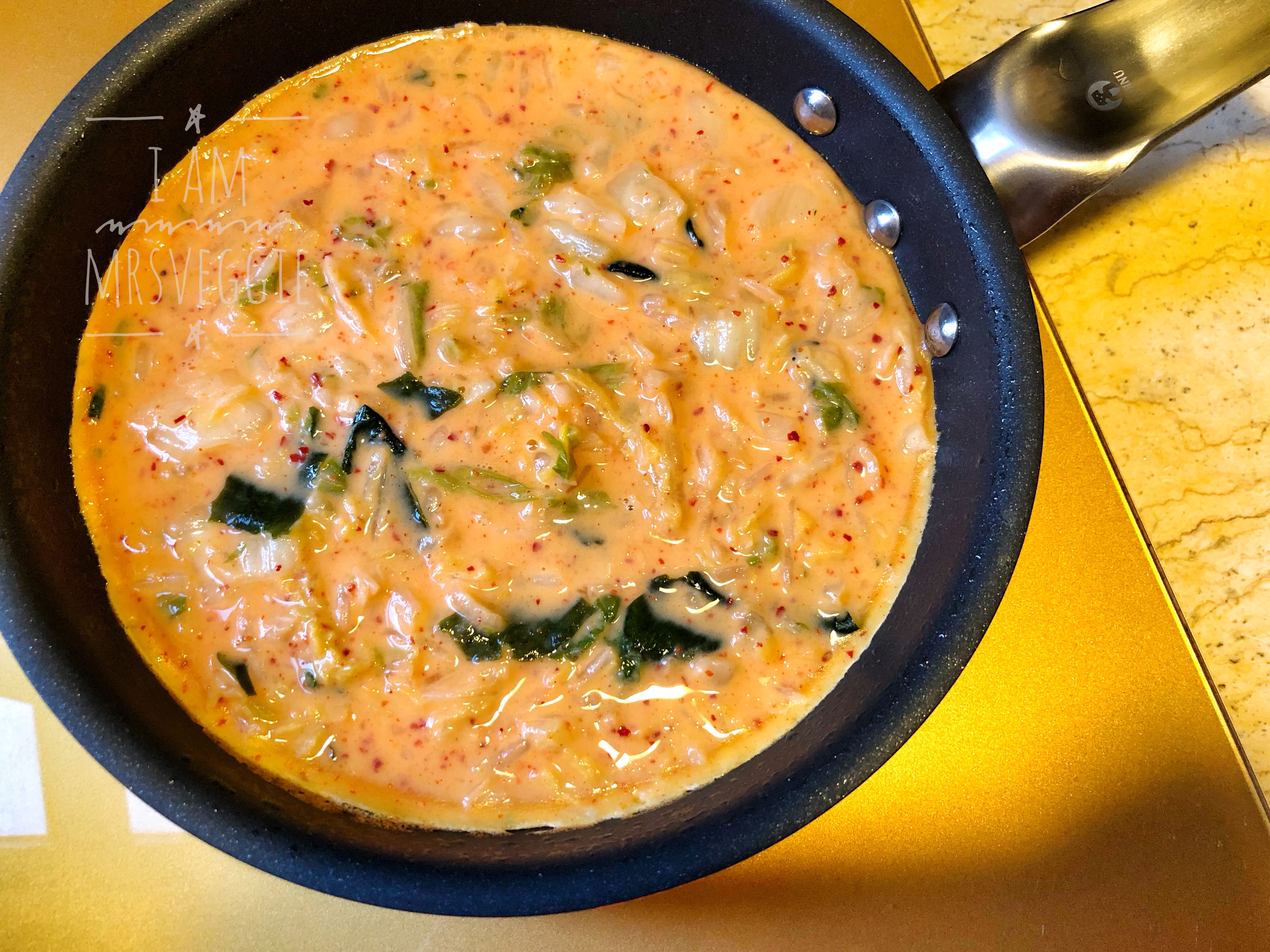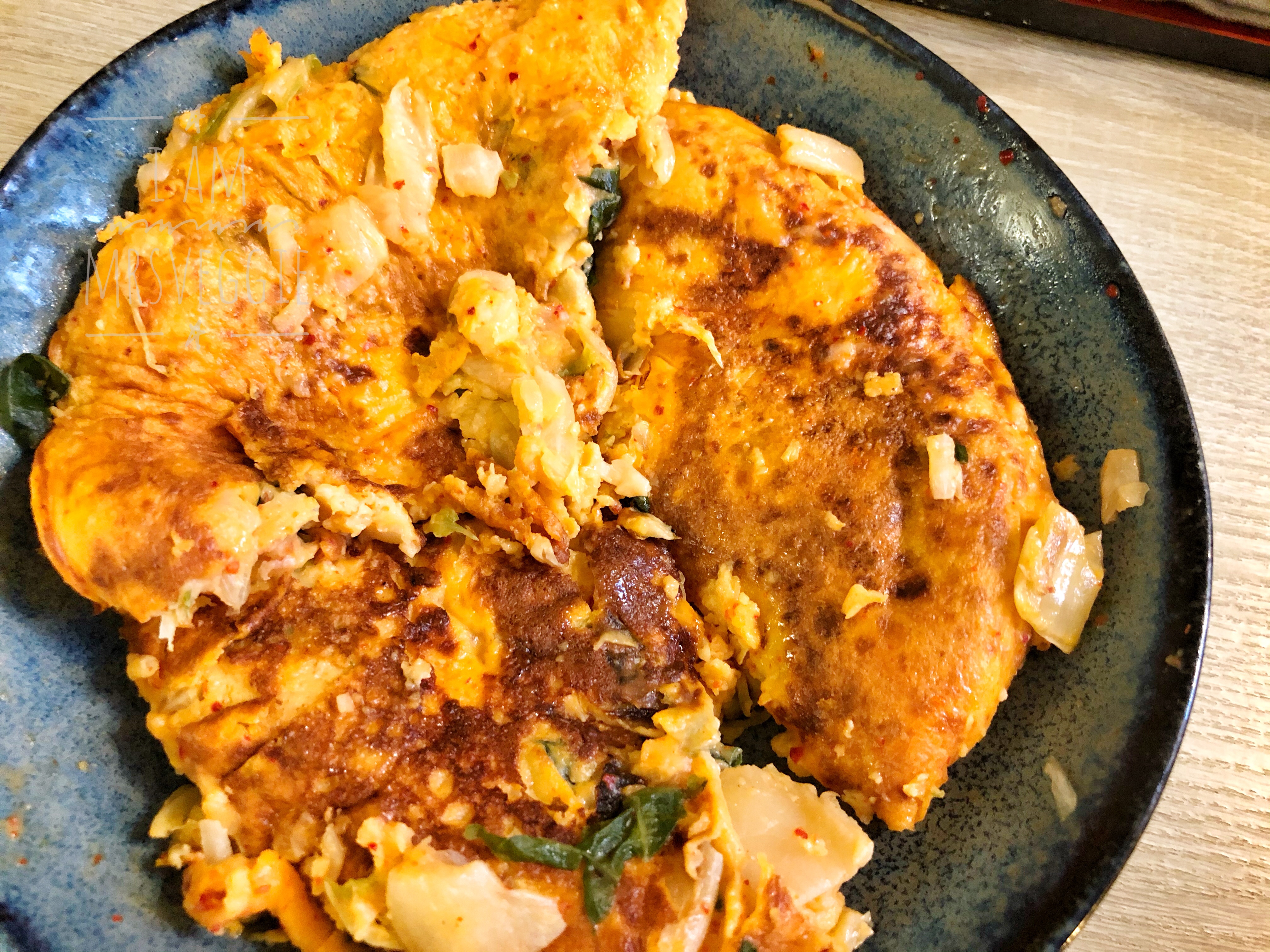 買了新平底鑊,新_坑當然要開開爐,想整 pancake 但全宇宙的 pancake mix 斷巿,基本上所有麵粉類都斷晒巿 (世界末日喇),家裡有少少泡菜又有少少麵粉,不如就試做泡菜煎蛋餅。